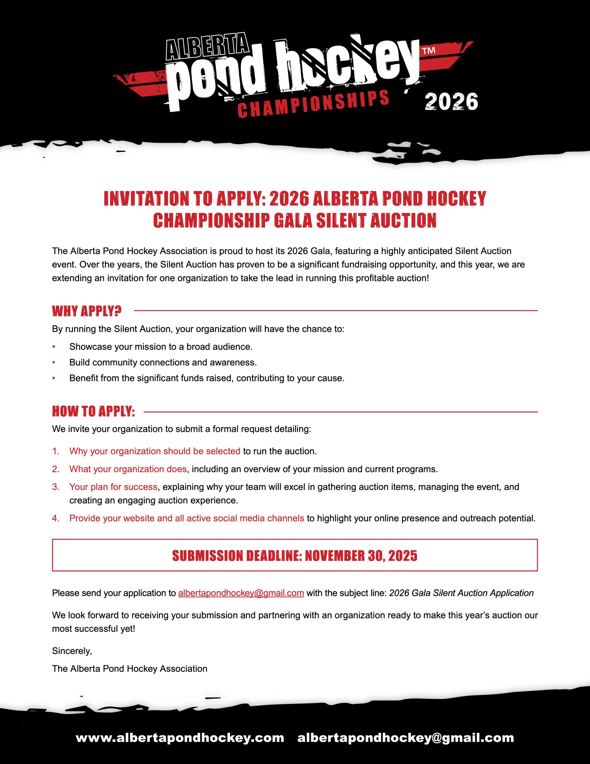 The 2023 Alberta Pond Hockey Championship winning team was Northsite from Grimshaw, Alberta.